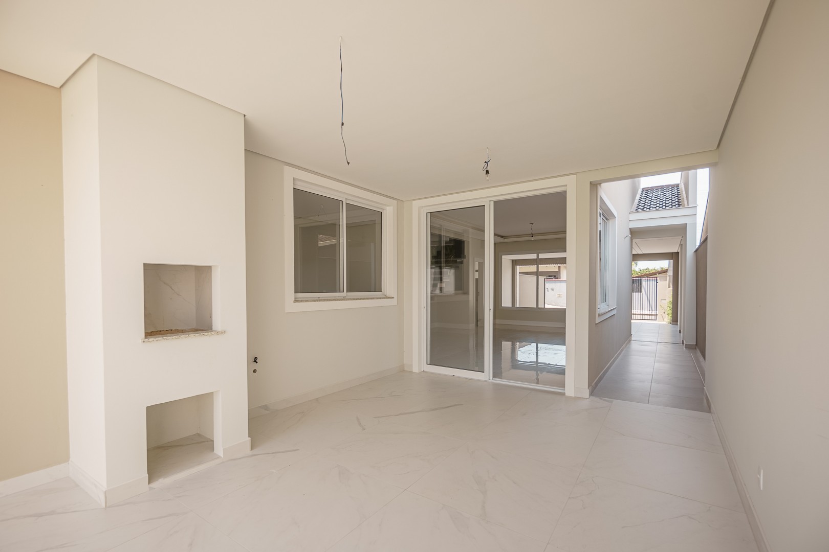 Casas com 200 m2 de área construída, com 3 quartos, sendo uma suíte com closet e sacada, banheiro social, lavabo, sala de estar e jantar, cozinha, área de serviço, área de lazer e 2 vagas de garagem cobertas.