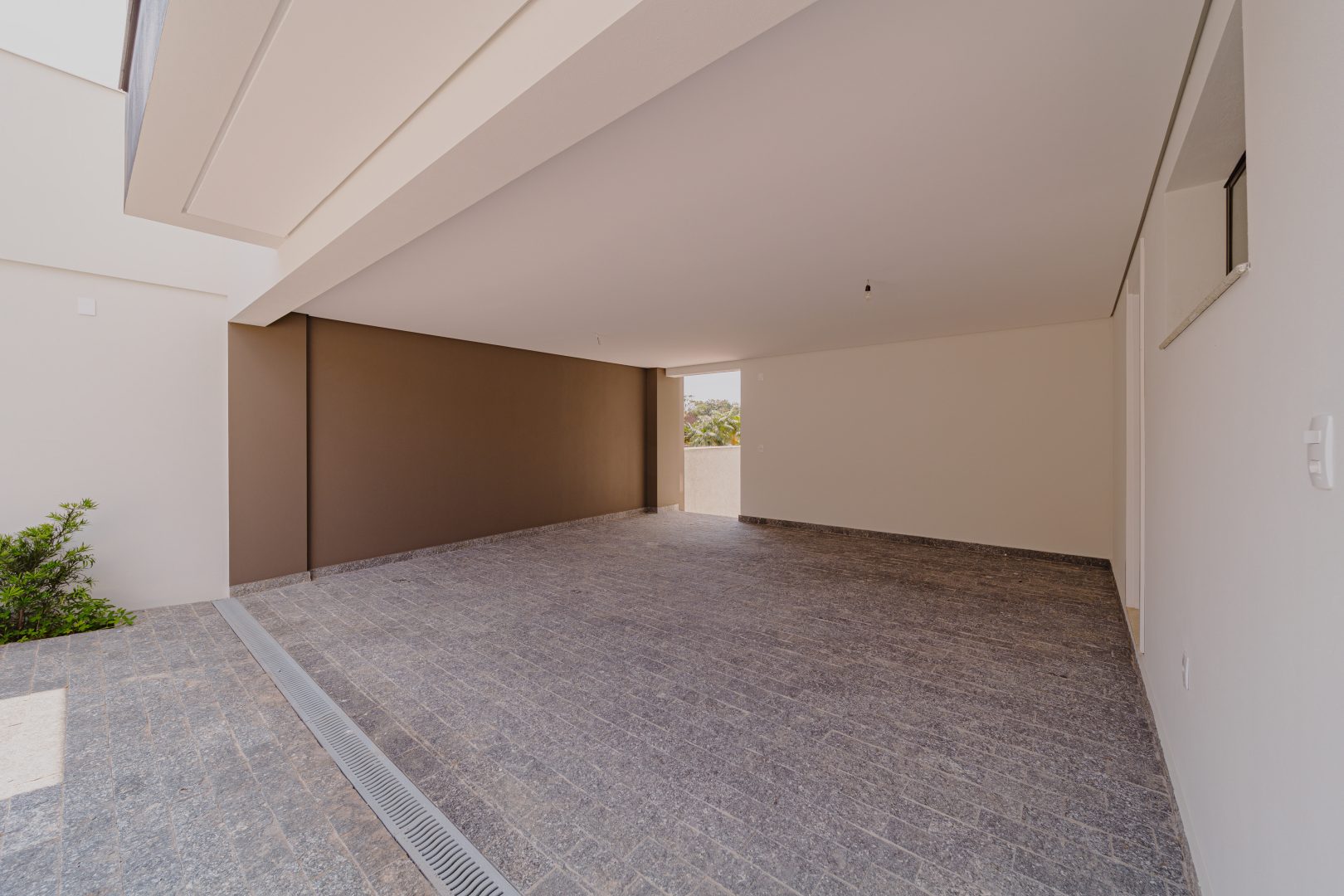 O andar térreo conta com garagem coberta para dois carros, área de serviço, lavabo e área de lazer com vista privilegiada.